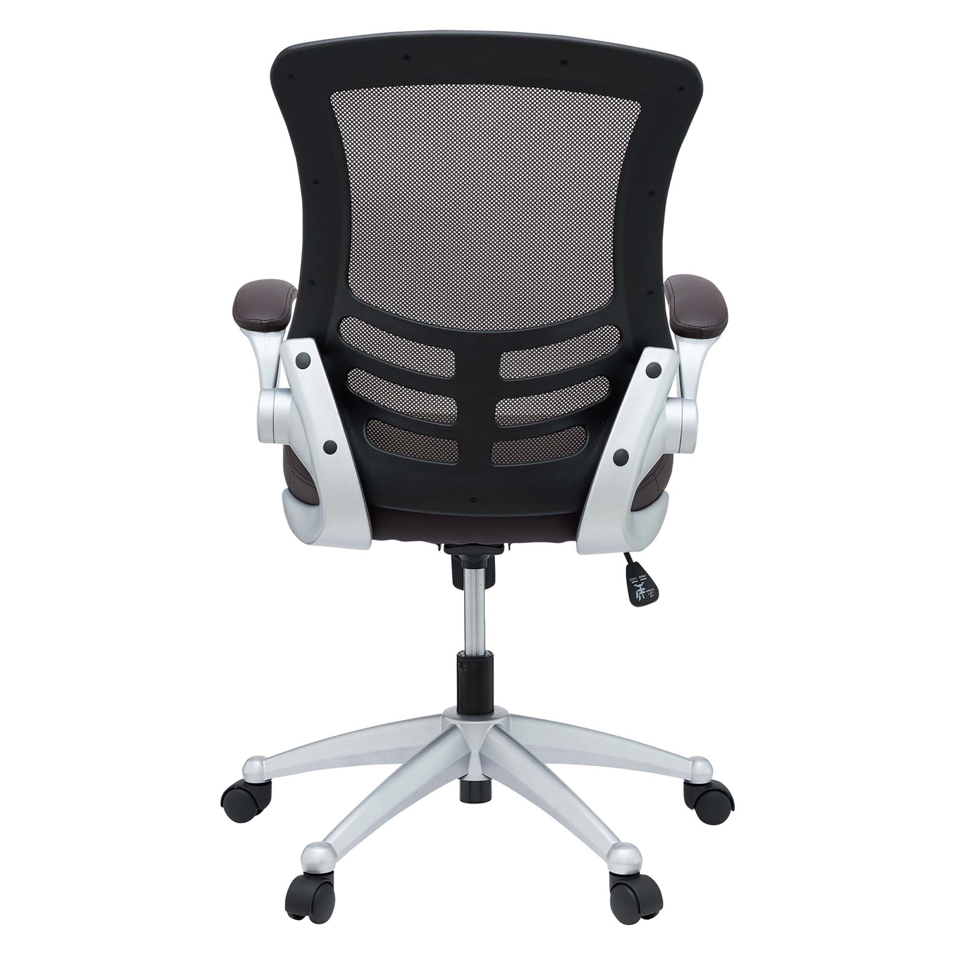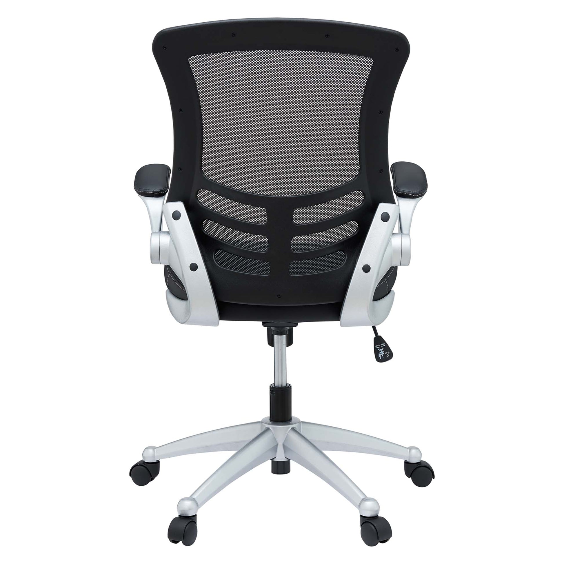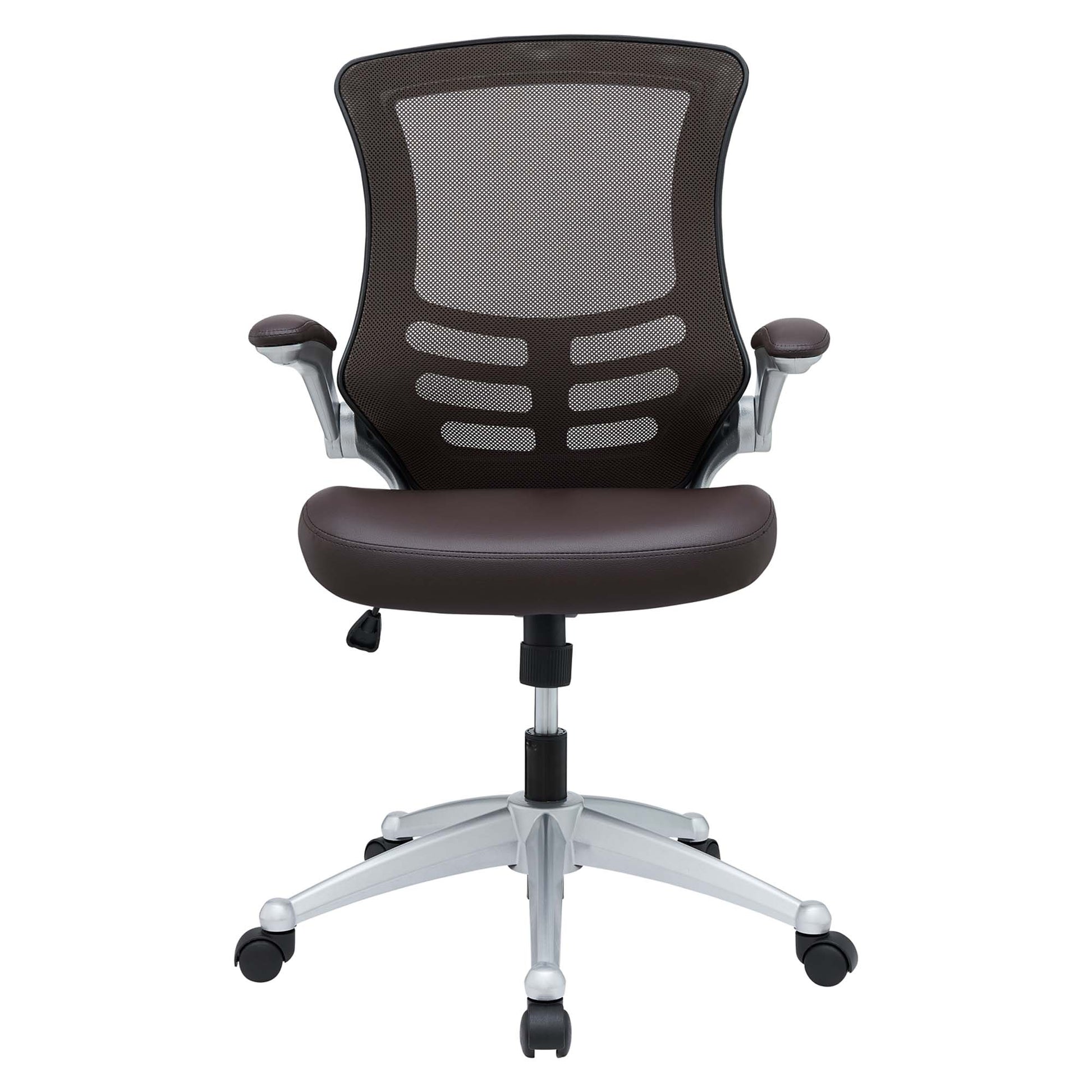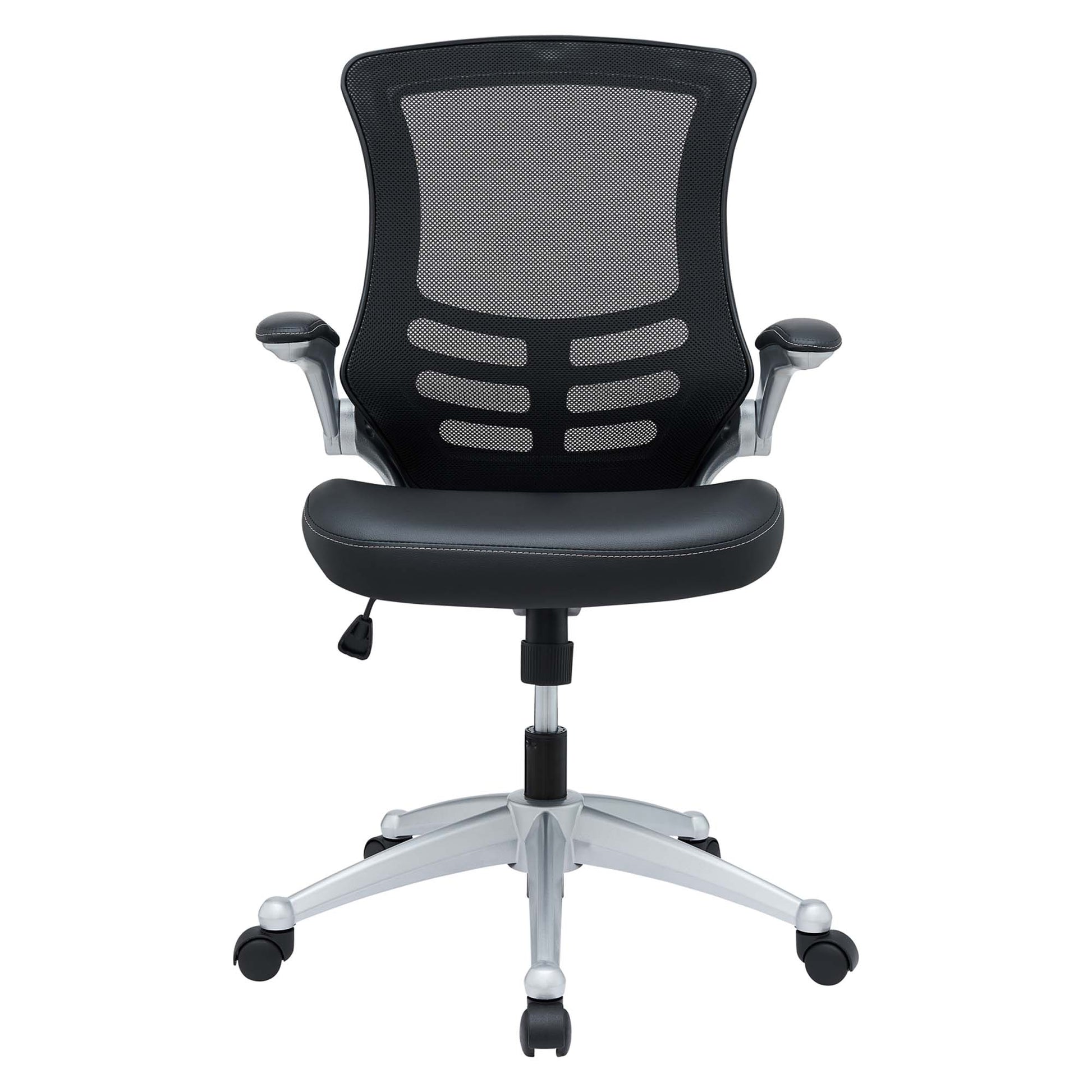 Taking you where you need when you need it most. The Attainment Office Chair is a form-fitting ergonomic chair made from the most revolutionary advances in seating today. The breathable mesh back is curved to assist back and shoulder posture, while the lower frame provides exemplary lumbar support. With flip-up arms and a leatherette padded waterfall seat, enjoy your work from a place of comprehensive comfort.