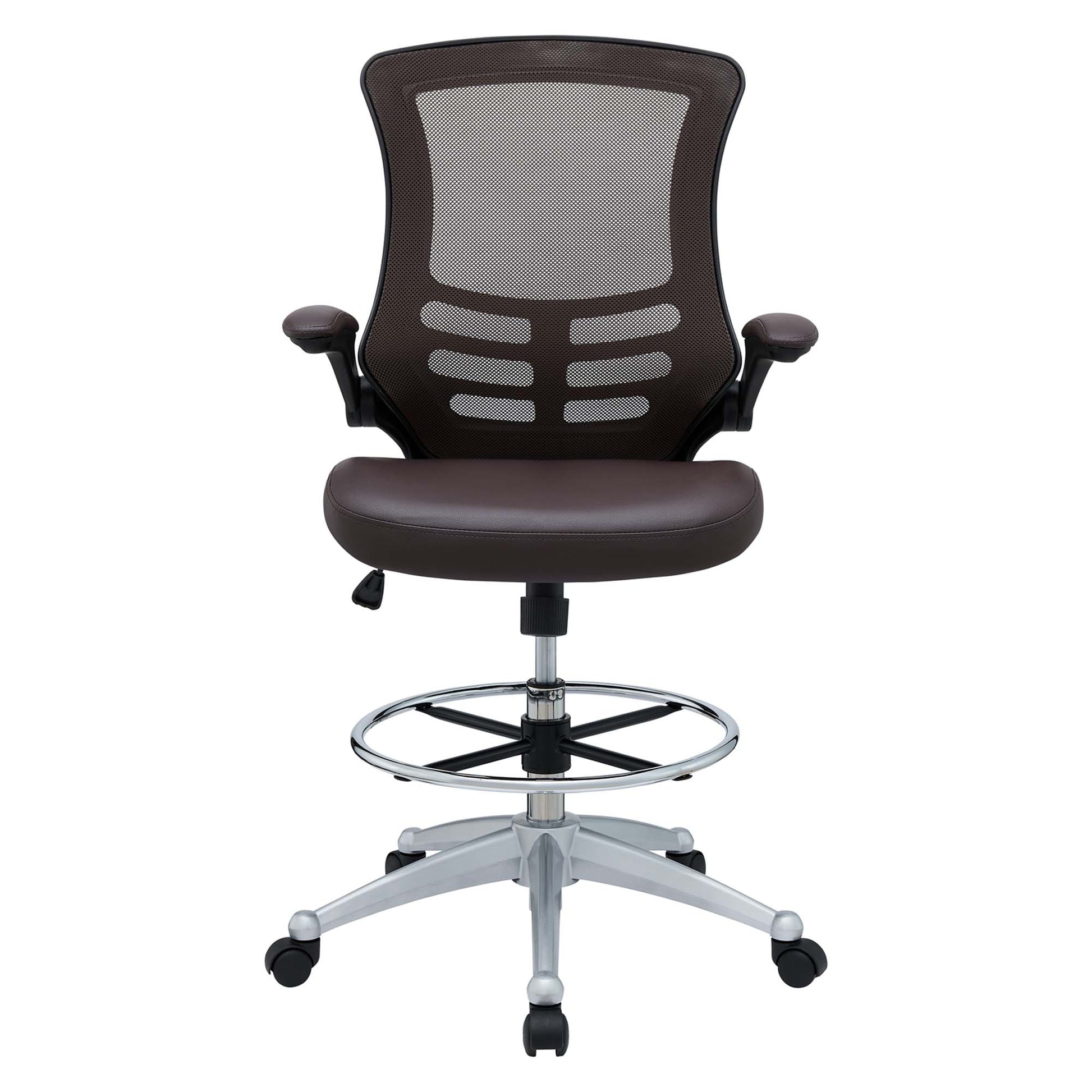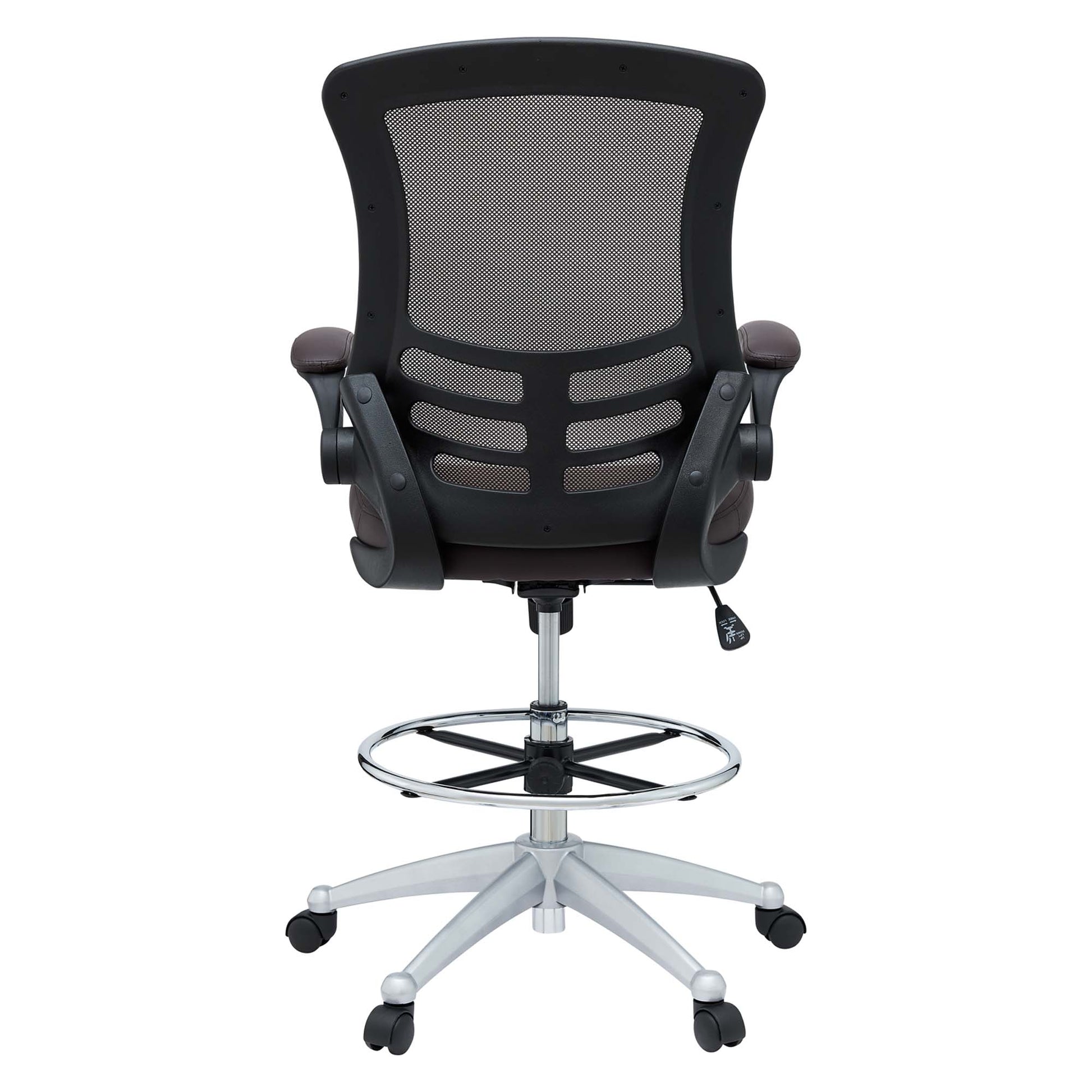 Chart new territory while seated from the comfort of the Attainment Drafting Stool. Attainment features a breathable mesh back for lower back lumbar support, padded waterfall vinyl seat to ease pain and pressure around your thighs, flip-up padded arms, foot ring with an extra tall gas cylinder, and securely locks in place with a user-friendly seat tilt plus tension control knob. Attainment is a progressive-minded drafting stool perfect for school, work, or home use.