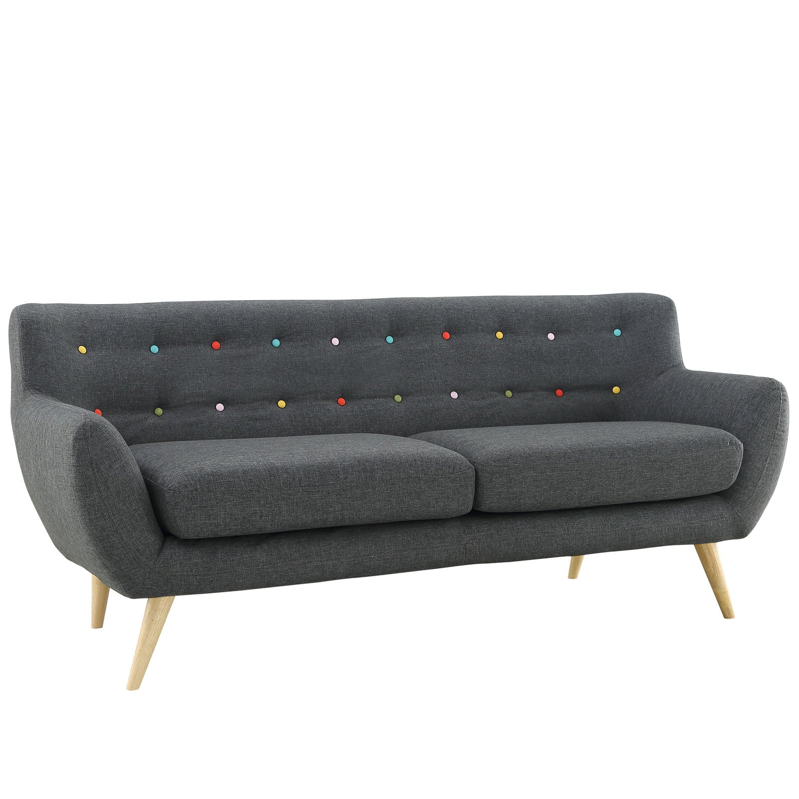 Take notice and engage your sensibilities with this plush dual cushion, organically shaped Living Room Set. Remark is gracefully positioned on solid natural wood dowel legs designed according to mid-century sentiments. Whether settling in with coffee and brunch, or entering a spirited discussion with friends, Remark’s polyester upholstery, two rows of finely stitched back seat buttons, and organic form ensure an eye-catching appeal at every turn. Bring depth and modernity to your contemporary living room or lounge area with the Remark mid-century modern style Living Room Set.