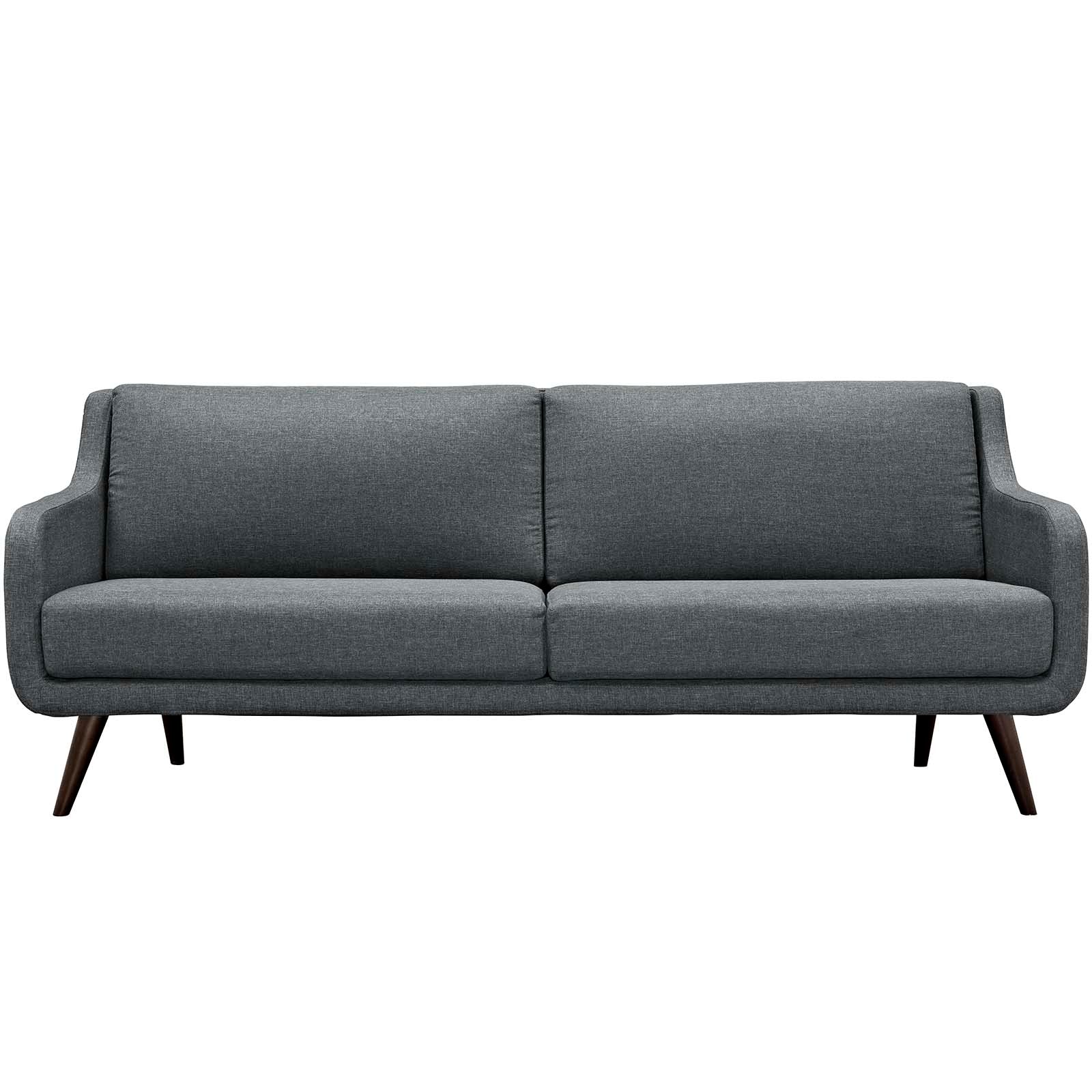 Be counted with Verve. Designed to be a spirited and enthusiastic piece that exudes mid-century charm, Verve leaves a lasting impression with its free-flowing organic form and minimalist elegance. Solidly made with exceptional support, Verve features dense foam cushioning, espresso stained wood legs and generous seating space. This mid-century inspired sofa is perfect for modern and eclectic living rooms, lounge spaces, and reception areas.