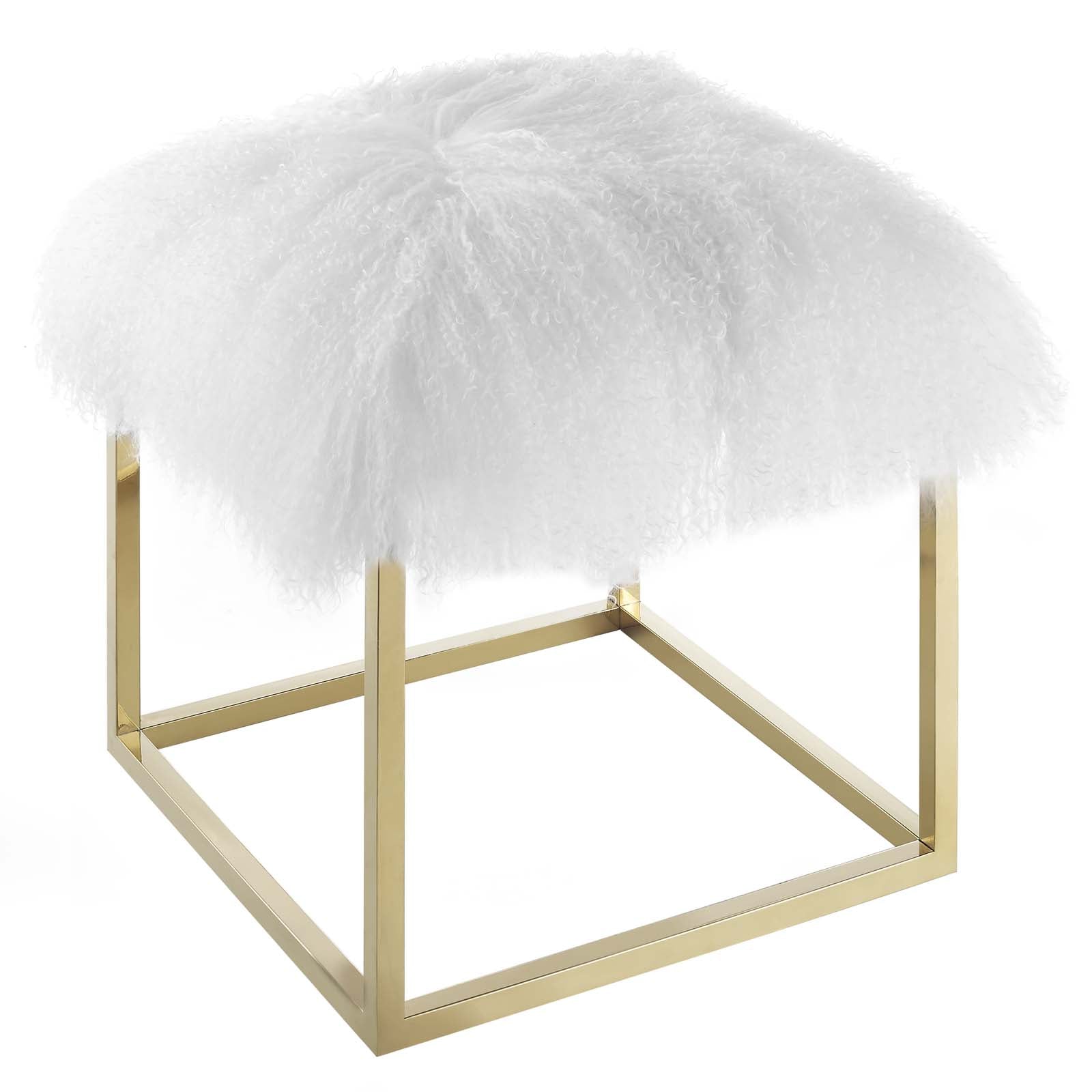 Faites une déclaration avec Anticipate. Débordant de lignes épurées et d'un look moderne et élégant, Anticipate est doté d'une base en acier inoxydable doré, d'un siège rembourré en mousse recouvert d'une luxueuse peau de mouton blanche et de capuchons de pieds non marquants qui aident à protéger votre sol. Le complément parfait à votre chambre, votre espace de vie ou votre entrée, Anticipate est un pouf polyvalent qui allie confort et style avec un coussin de siège de soutien et une capacité de poids allant jusqu'à 265 lb. Aucun assemblage requis.