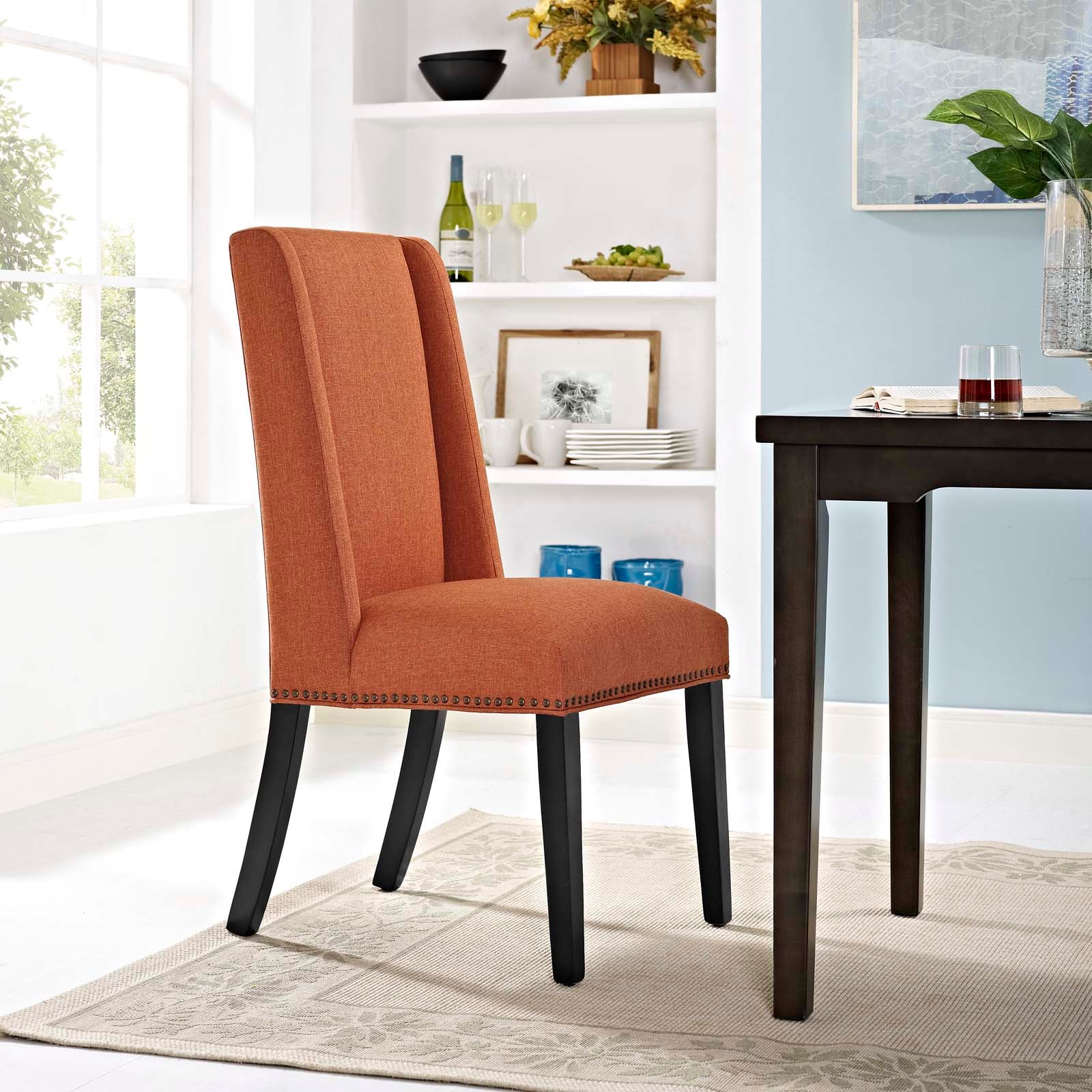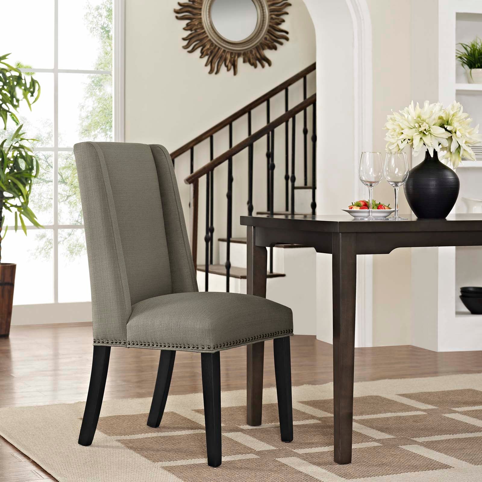 Explorez les vastes richesses d'un héritage précieux avec la chaise de salle à manger Baron. Conçue pour faire écho à l'élégance, cette chaise de salle à manger est dotée d'un dossier charmant et d'un siège poli à tête de clou avec une touche de grâce et d'attrait noble. Dotée d'un rembourrage en mousse dense, d'un revêtement en tissu fin, d'un cadre en bois massif et en MDF et de pieds avec patins non marquants, cette chaise Parsons mise à jour est une chaise de salle à manger élégante parfaite pour la salle à manger, le salon, l'entrée ou le bureau à domicile. Capacité de poids : 500 lb.
