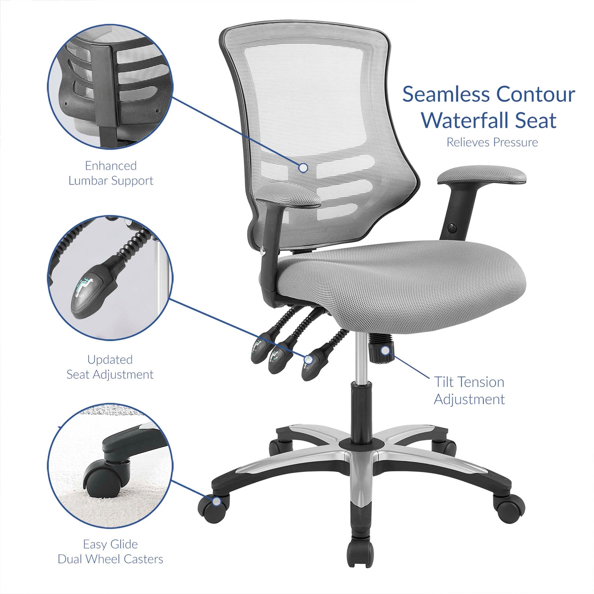 Accomplissez vos tâches quotidiennes avec la chaise de bureau Calibrate. Cette chaise de bureau à cadre en nylon robuste est dotée d'accoudoirs réglables en hauteur, d'un dossier en maille respirante avec support lombaire passif, d'un siège en cascade rembourré en mousse dense recouvert de maille, d'un pivotement à 360 degrés et de cinq roulettes doubles pour un mouvement naturel sur les surfaces en moquette ou en bois dur. Faites l'expérience de la productivité sans compromettre le confort avec ce compagnon de travail convivial.
