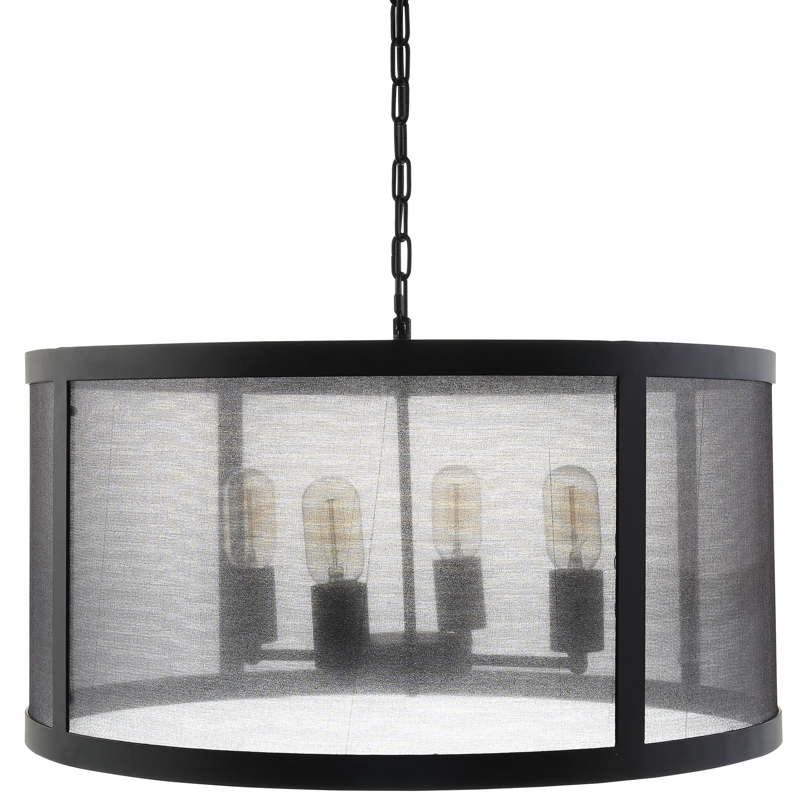 Regardez vaillamment vers l'avant avec le lustre Frost. Créez l'ambiance parfaite avec un couvercle en plastique durable givré soutenu par une garniture en acier et une chaîne en acier réglable. Faites jaillir avec succès la lumière en abondance avec cette pièce qui illustre à la fois les sensibilités de design traditionnelles et modernes. Frost s'adapte à quatre ampoules avec des possibilités infinies pour les décors rustiques, ranch, vintage moderne, industriel moderne et autres décors de transition.