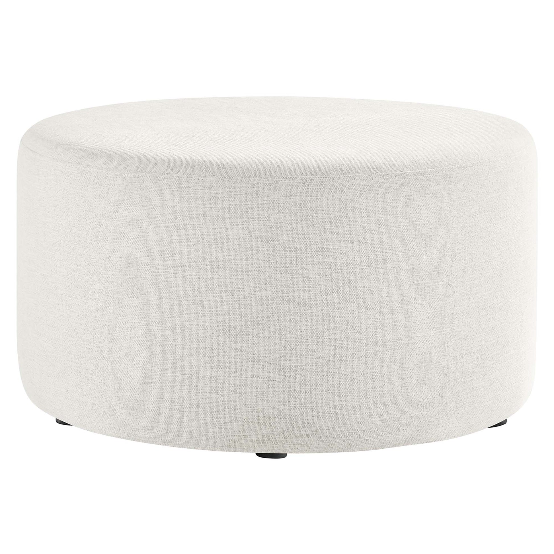 Experience refined comfort with the Callum 29" Round Upholstered Ottoman, a sleek accent ottoman designed for the contemporary home, apartment, or office. Crafted with beautifully textured woven heathered fabric upholstery, this versatile round ottoman exudes subtle elegance with its tailored silhouette, perfect for any modern furniture decor. Inside, dense foam padding serves not only as a comfortable ottoman seat for entertaining or as a relaxing footrest for unwinding, but also seamlessly transforms into a stylish round ottoman coffee table, great for any living room setting. The Callum ottoman stool’s thoughtful design includes low-profile plastic legs with non-marking glides to protect your floors from scuffs and scratches. Arriving fully assembled, this ottoman foot rest seamlessly blends upscale style with everyday functionality. Weight Capacity: 506 lbs.