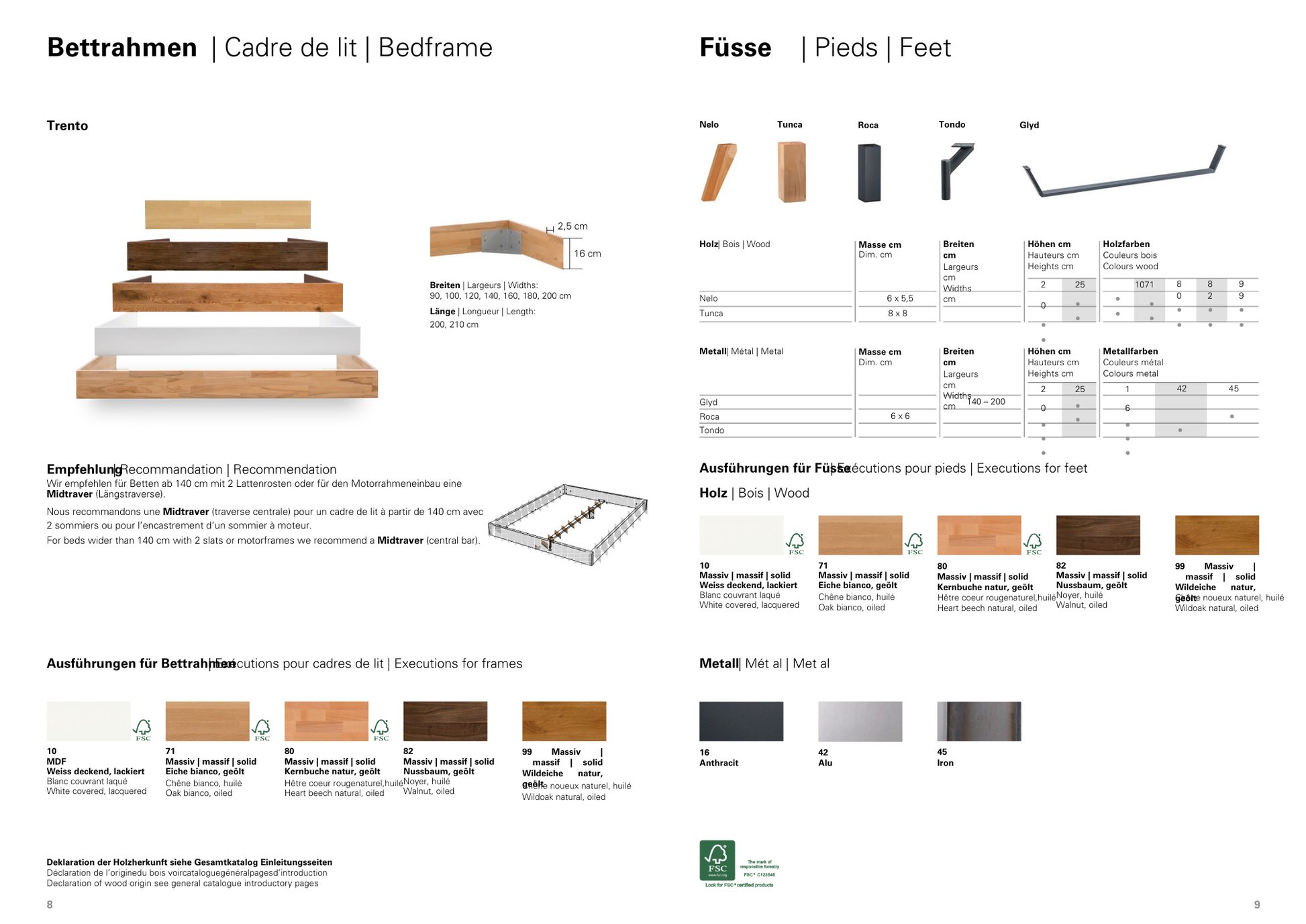 Rapallo Bettgestell / Breite: 90 cm / Länge: 200 cm / Höhe: 20 cm / Holz: 10-MDF weiss deckend, lackiert