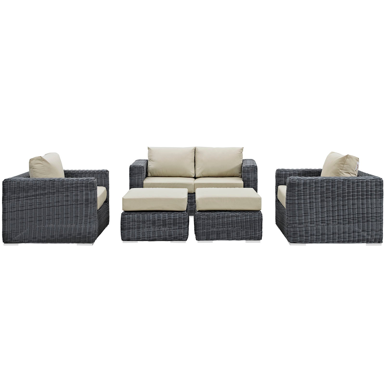 Experience the outdoors with exceptional comfort and quality. Summon Outdoor Patio Sectional Sofa set offers an exquisite two-tone synthetic rattan weave, plush all-weather cushions with industry-leading Sunbrella® fabric, UV protection, and a sturdy powder-coated aluminum frame. Featuring an elegant modern look, Summon Patio Sectional Sofa Set is part of an avant-garde outdoor sectional series well-equipped for enhancing patio, backyard, or poolside gatherings. This installment of the series is an Outdoor Patio Furniture set.