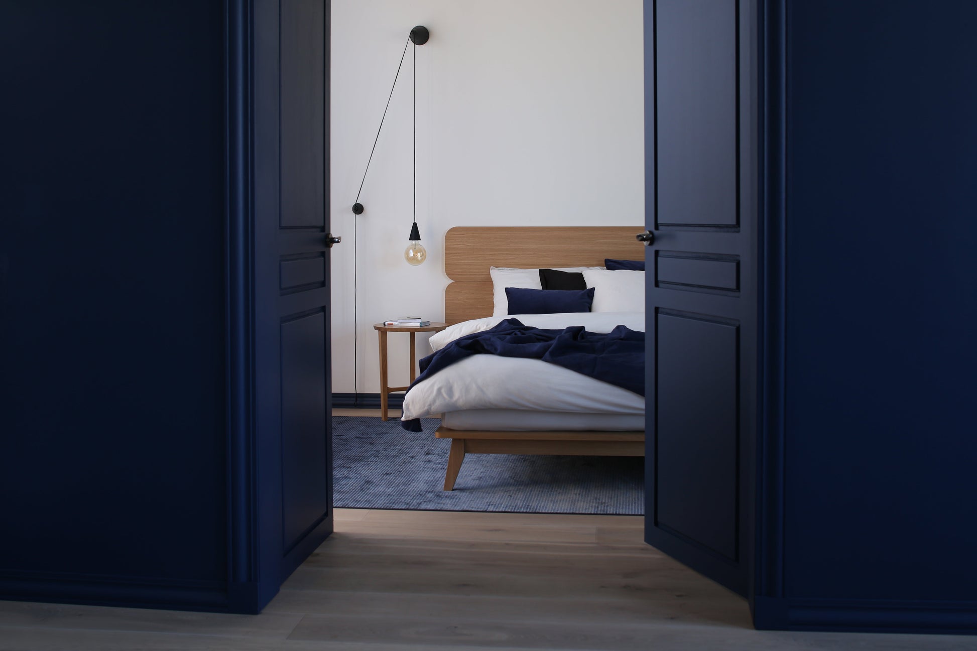 די שלאָפצימער זאָל זיין דיזיינד צו שאַפֿן אַ רויק און פרידלעך געפיל.