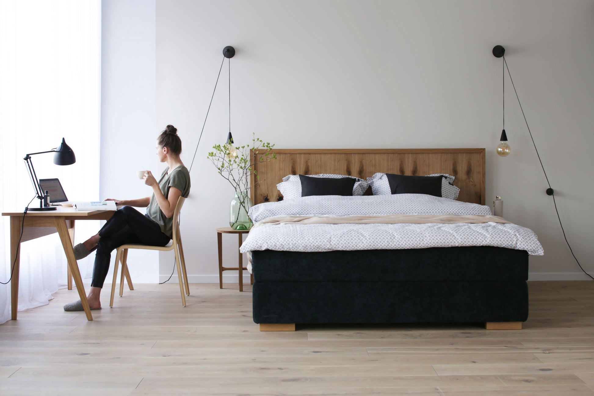 די קאָמבינאַציע פון ווייכע שטאָף און דער אָנגענעמער אָנריר פון נאַטירלעך דעמב וועט ברענגען אַ רואיק און אָפּרוען געפיל צו דער אַלגעמיינער שטימונג פון שלאף-צימער.