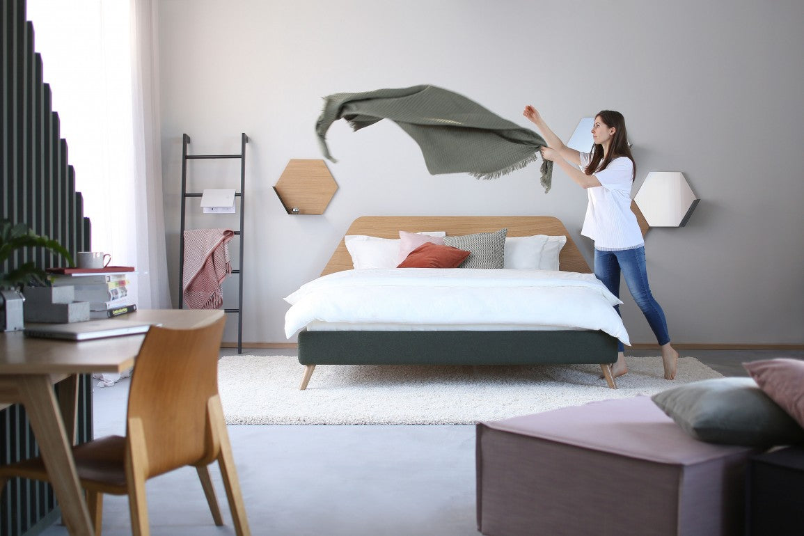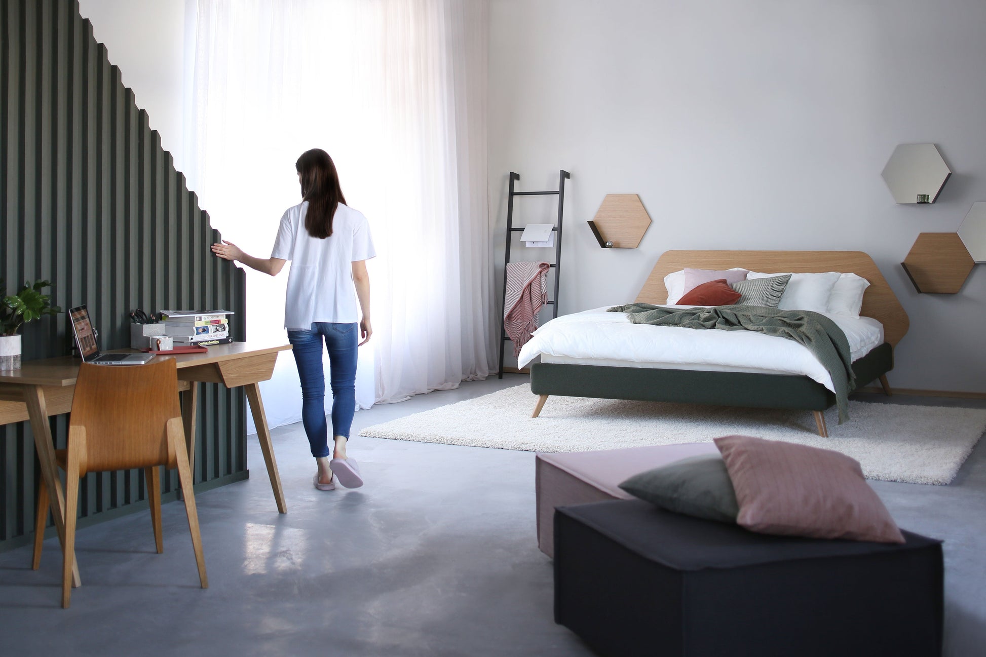 דער קאָפּטייל פֿונעם בעט מיט נאַטירלעכער האָלץ-פֿאַרענדיקונג איז אַ גאנץ דערגאַנצונג צו דעם שטאָף-פֿאַרענדיקטן בעט-ראַם. שלאָפֿצימער דיזיין קען מען דערגאַנצן מיט פּאַסיקע קמאָדן, בעט-טישלעך און שפּיגלען פֿון דער עידן שלאָפֿצימער קאָלעקציע, שאַפֿנדיק אַן אײנהײטליכן אויסזען און פֿונקציאָנאַליטעט. טעאָ בעט איז צו באַקומען סײַ אין אײנציקע סײַ אין דאָפּלטע בעט גרייסן.